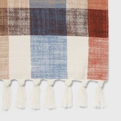 Bring the colors of fall to your dining space with this Plaid Table Runner from Threshold™. This rectangular woven table runner features multicolored plaid print in earthy hues, while white tassels along the hem add a touch of contrast. Made from 100% cotton for soft feel, you can simply toss it in the washing machine for a quick refresh whenever needed. Spread it lengthwise down the center of your dining table to provide a lovely base for your serveware.