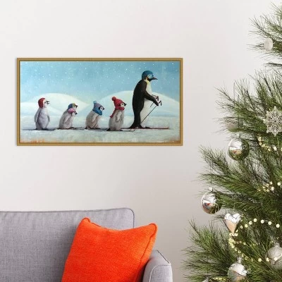 - CUSTOM CANVAS ARTWORK DETAILS: Ski School Penguins by Lucia Heffernan. DESCRIPTION: Tis the season for all things merry and bright! Add holiday cheer to your home with this seasonal reminder of winter celebrations that bring together family and friends. ARTIST BIO: Her body of work is an expression and exploration of her lifelong fascination with animals. Through her paintings, she seeks to give animals a voice and a personality, while making light of our uniquely human existence