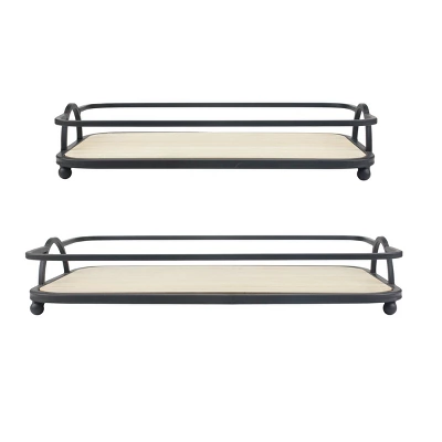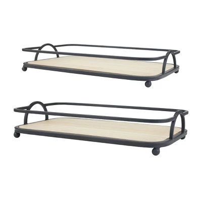 Buy a tray set that is not only functional but also stylish with Stonebriar’s 2pc modern rectangle wood and metal serving tray set. This decorative tray set comes with 1 large and 1 medium tray that easily nest together for storage. Tray set features a sleek natural wood base and sturdy metal frame with black painted finish. They are the perfect accompaniment to any home decor style. Use your tray set to serve food and drink to friends and family at weddings or parties, or add your favorite candles, orbs, or decorative fill to create a unique centerpiece.