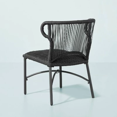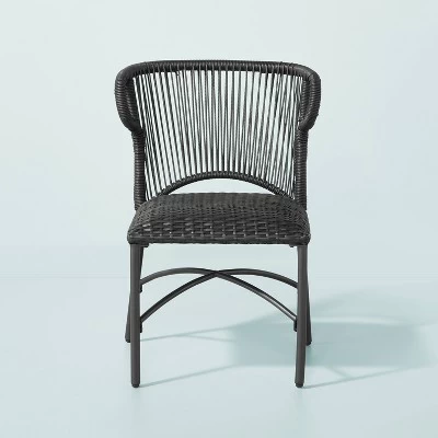 Round out your al fresco dining arrangement in chic style with this 2-Pack Wicker Weave Outdoor Padded Dining Chair Set in Dark Gray from Hearth & Hand™ with Magnolia. These dining chairs feature a weather- and rust-resistant sturdy metal frame covered with a woven back and seat for a stunning look that’s tough enough to withstand outdoor use. Plus, the curved chair backs add more comfort to the mix.