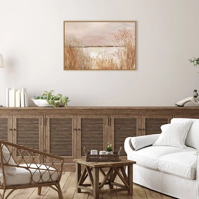33″ X 23″ Golden Pink Beach By Allison Pearce Framed Canvas Wall Art Print – Amanti Art
