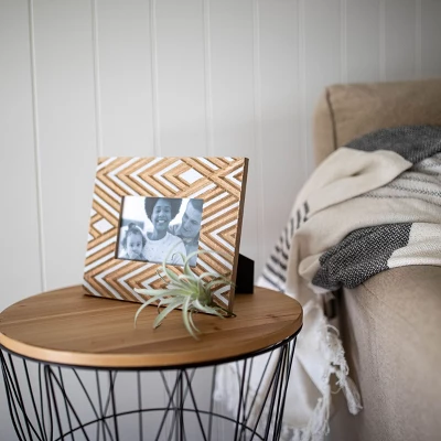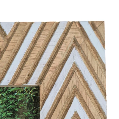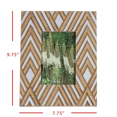 With a modern chevron pattern, a 4X6 picture frame by Foreside Home & Garden that provides a stunning home for your favorite photos. The mixed diamond pattern is etched into the natural wood base, accented by alternating touches of gray. Your favorite moments will appear even more special with this wonderful frame as a border.