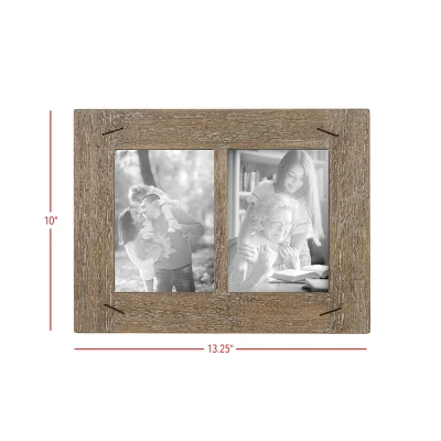 5X7 Inch 2 Photo Weathered Picture Frame Wood, MDF & Glass By Foreside Home & Garden