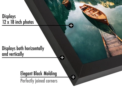 - Quality: Durable, gallery-style frame; the frame’s front has clear glass and a sturdy backboard to keep your photo in place