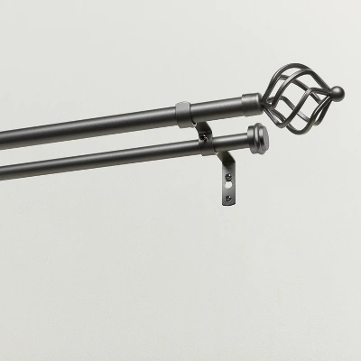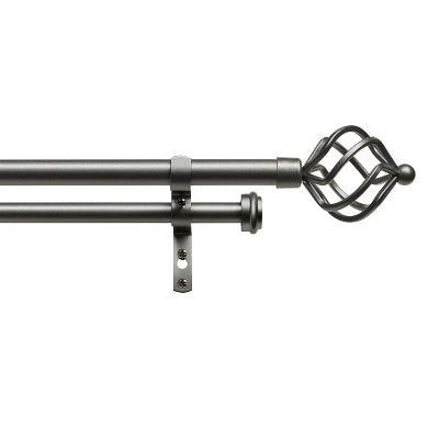 - The Torch double curtain rod and finial set has an open, airy design with twisted iron strand sphere shape finials