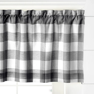Stylish, rustic and beautiful the Farmhouse Living Collection offers everything you need to create the shabby chic, modern country home. This fashionable valance is made from premium quality cotton and features the perfect buffalo check pattern in a variety of colors to create the best Farm house look. Soft cotton can be easily ironed to release stubborn creases and make your valance wrinkle free. Delicately hemmed edge adds a finished look and prevents wear and tear. Sold as a single valance measuring 60 inches wide by 15 inches long. Coordinating tier set sold separately. 2 inch rod pocket with 1 inch decorative header. Coordinate to all the items in our Farmhouse Living collection including tablecloths, placemats, pot holders, kitchen towels, and kitchen mats. 100% cotton. Easy care, machine washable.