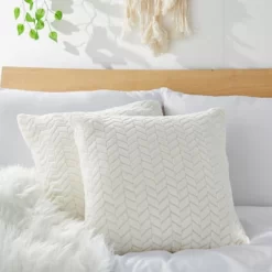 Farmlyn Creek 2 Pack Decorative Zipped Beige Faux Fur Throw Pillow Covers For Couch Sofa, 20×20 In