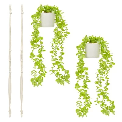 Juvale 2 Pack Hanging Artificial Faux Eucalyptus, Fake Plants With Ceramic Pots For Spring Home Decor, House Warming Gift, 31 In