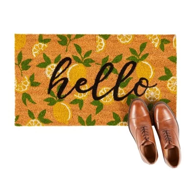 Place this hello door mat at your front entrance, patio, or garage to protect your wood, carpet, or tile floors from unwanted stains caused by mud, grass, and snow. The center of the brown front porch rug features decorative lemons and “hello” written in cursive that will instantly elevate your lemon home decor while simultaneously ensuring your floors stay clean and damage-free. The welcome doormat measures 17 x 30 inches is made from natural coir fiber with a rubber backing to provide additional stability while cleaning your shoes.