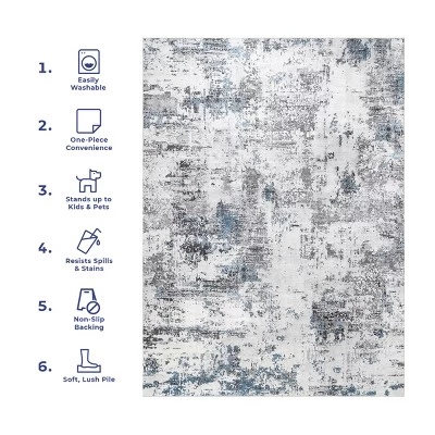 - New and innovative one-piece machine washable rug with the backing layer attached. This conveniently eliminates the hassle of any additional setup, simply lay flat in the desired space upon arrival and after each wash