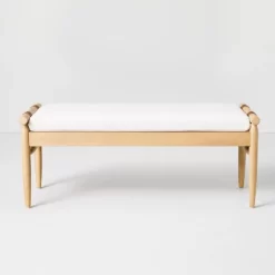 Upholstered Natural Wood Accent Bench Oatmeal – Hearth & Handâ„¢ With Magnolia