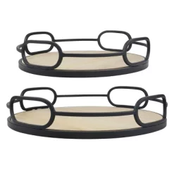2pc Modern Round Wood And Metal Serving Tray Set Brown – Stonebriar Collection