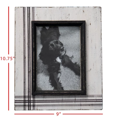 A modern plaid perfectly accents your photos in this 5×7 wood frame from Foreside Home & Garden. The white rustic painted background contrasts the black modern take on plaid, creating a modern farmhouse display for your favorite photo memories. The glass front will help to protect your photo from dust and other damage. This piece will look great placed on your shelf, desk, side table, mantel, or hung on a wall for a versatile display anywhere in your home.