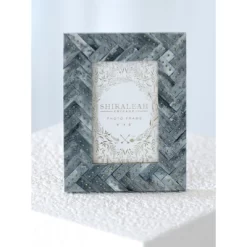 Put your favorite memories on display with Shiraleah’s Roma Check picture frame. This 4×6 frame features a scalloped design in a black and white color scheme. The scalloped design will add a chic and retro look to your table top décor. The easel back stand allows the frame to sit on any shelf or table display. A glass shield protects your 4×6 artwork and the frame can sit vertical or horizontal. Mix and match with other Shiraleah frames!