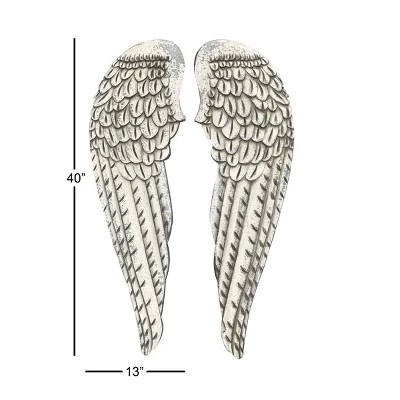 Create a balanced space in the most creative way with this expertly crafted wall decor for captivating focal point. Showcase your personality and turn your walls into an art gallery with this captivating wall decor. Get that surreal vintage vibe with these wooden angel wings decor on your pale or pastel-painted walls. This item ships in 1 carton. Can be hung vertically using the D-rings on the back; nails and screws not included. Suitable for indoor use only. This item ships fully assembled in one piece. This white colored wall sculptures comes as a set of 2. Vintage style.